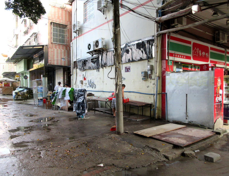 | 这家紧挨着多伊份侧墙的卖鞋袜床垫席子水桶等杂货的摊档 全部清走了 | ||||||