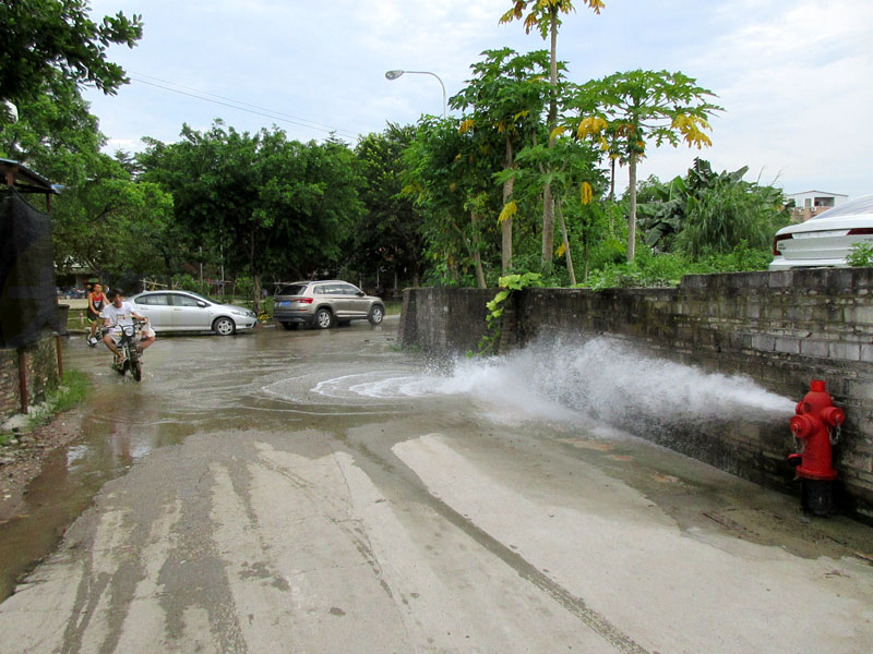 看状势,这消防栓冲盖漏水,应该有一二十分钟左右了吧。估计稍后,会有水利相关人员来处理 |