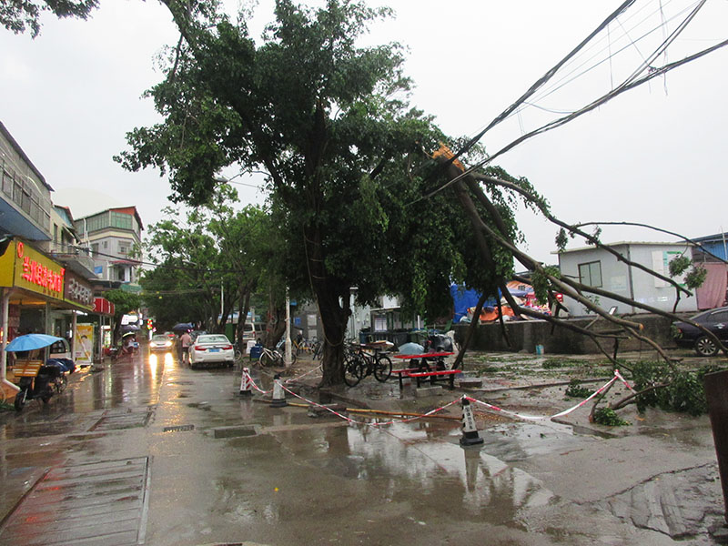 昨天下午(午后)被风雨吹刮断的南亭大道路边的大树枝干今天看到已经削砍去细枝末节,估计稍后或明后天也会一并清理运走 ; 此路口暂时还是不便四轮机动车通行,要待现场完全清理完才能恢复通畅