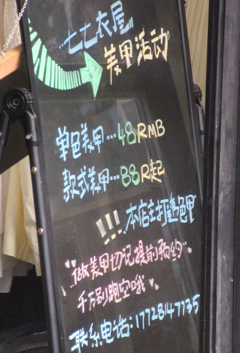 | 西社大街南的七七衣屋似乎还有提供美甲服务or活动 单色48元,款式88元起 不过好像是要提前预约 | ||||||