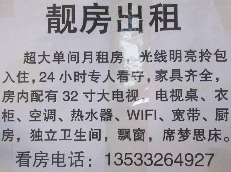 南亭 靓房出租 超大单间月租房,光线明亮拎包入住,24小时专人看守,家具齐全,房内配有32寸大电视,电脑桌、衣柜、空调、热水器、WIFI、宽带、厨房,独立卫生间,飘窗,席梦思床 看房电话:13533264927 |