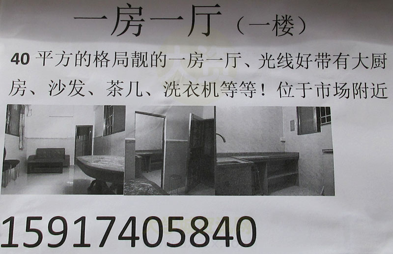 | 一房一厅(一楼)40平方的格局靓的一房一厅、光线好带大厨房、沙发、茶几、洗衣机等 市场附近 | ||||||