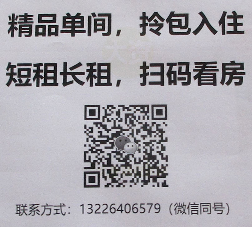 | 精品单间,拎包入住,短租长租,扫码看房 联系方式:13226406579(微同) | ||||||
