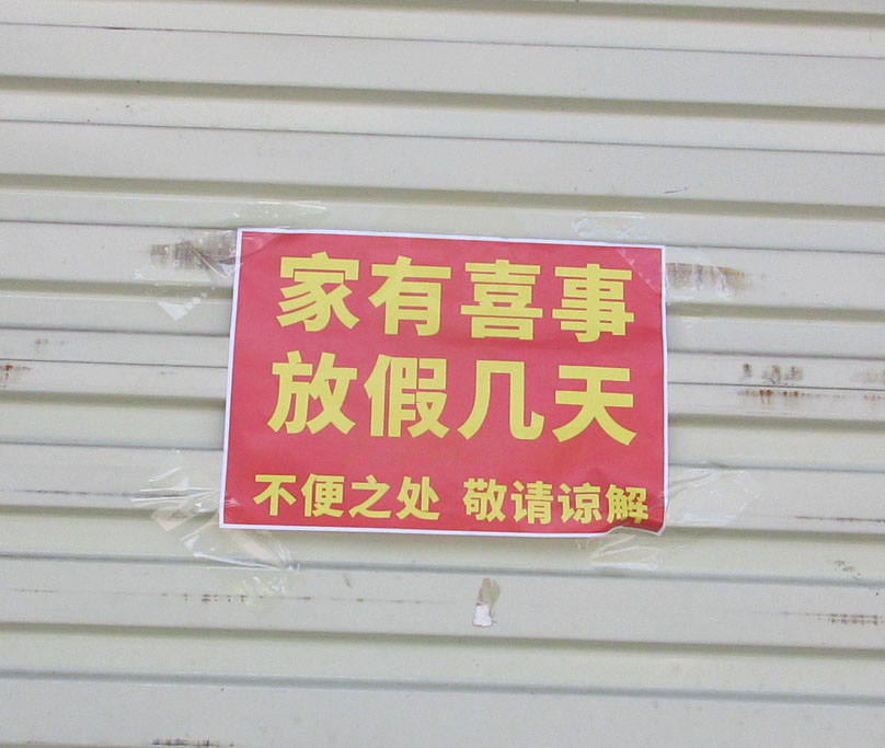 | 下朗大街中-蔚然锦和超市便利店 贴示说家有喜事放假几天 | ||||||