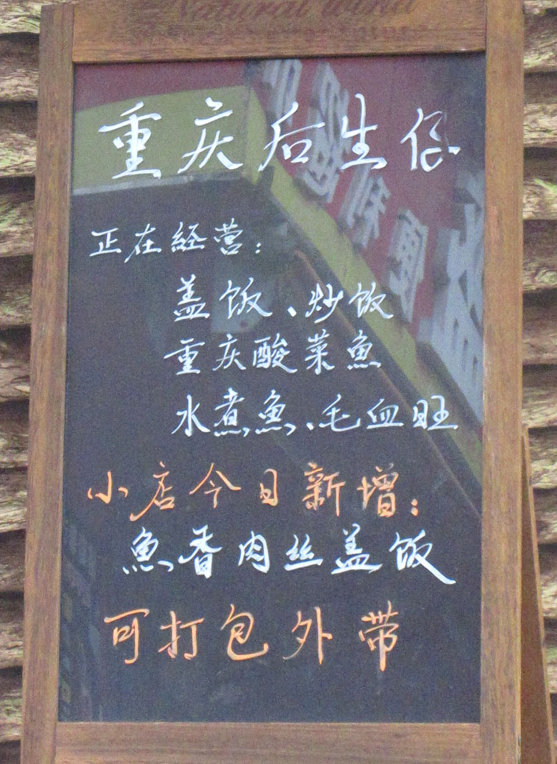 | 西社大街近南端&西社二巷交汇三岔口这个之前一直没开挺久的铺位 最近看到已新装成一家叫重庆后生仔的餐饮类店 看到具体介绍说是做盖饭,炒饭,酸菜鱼等 | ||||||