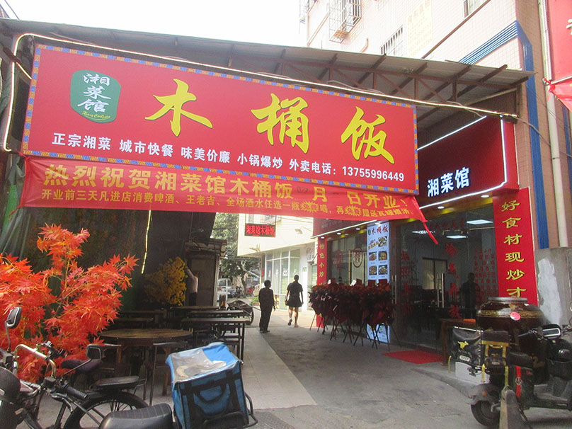 南亭商业街一号楼西侧北 稍早前看到在新装的湘菜馆木桶饭 今天看到似乎弄好开业中