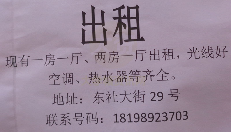 | [南亭租房简讯]一房一厅、两房一厅 空调、热水器 东社大街29号 | ||||||