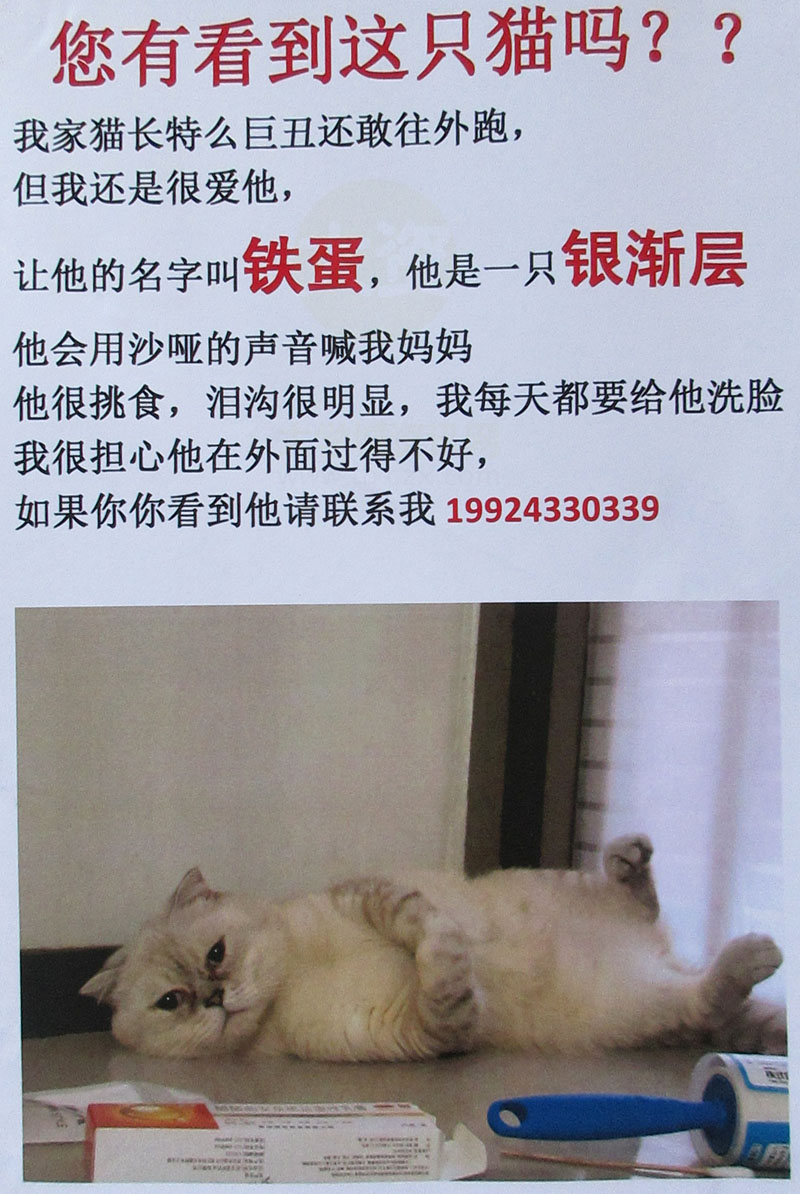 | 南亭又有人丢猫了 长这样 | ||||||
