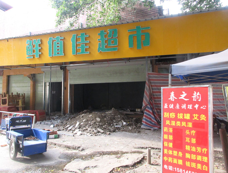 | 今天商业街一号楼东南角 佳嘉生鲜超市继续在装修,南边围布撤去了 | ||||||