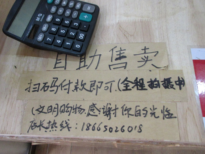 下朗大街中这家易喜良品,看到好像开启了自助售卖,无人在店也能买