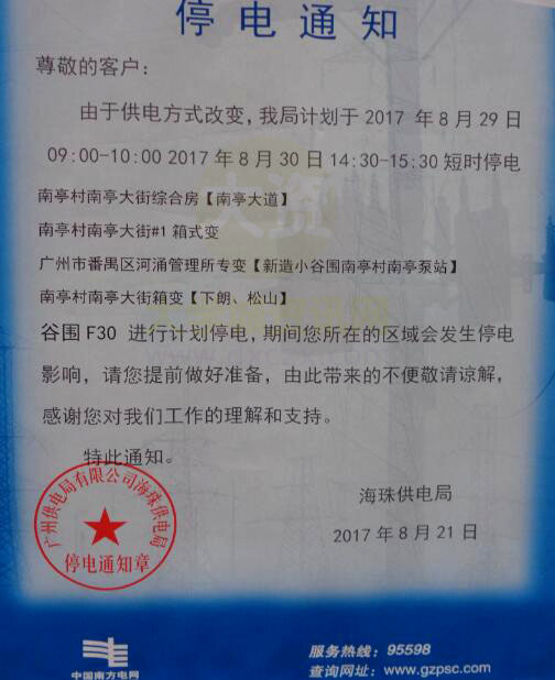 | 由于供电方式改变南亭村短时停电通知 | ||||||