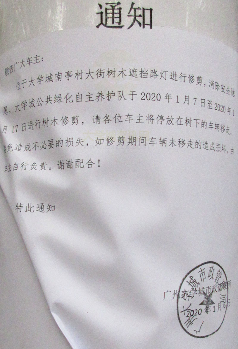 | 市政通知 南亭村大街要削树 车主快将车开走 | ||||||