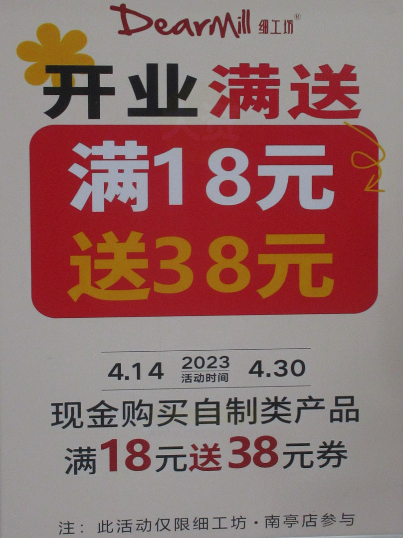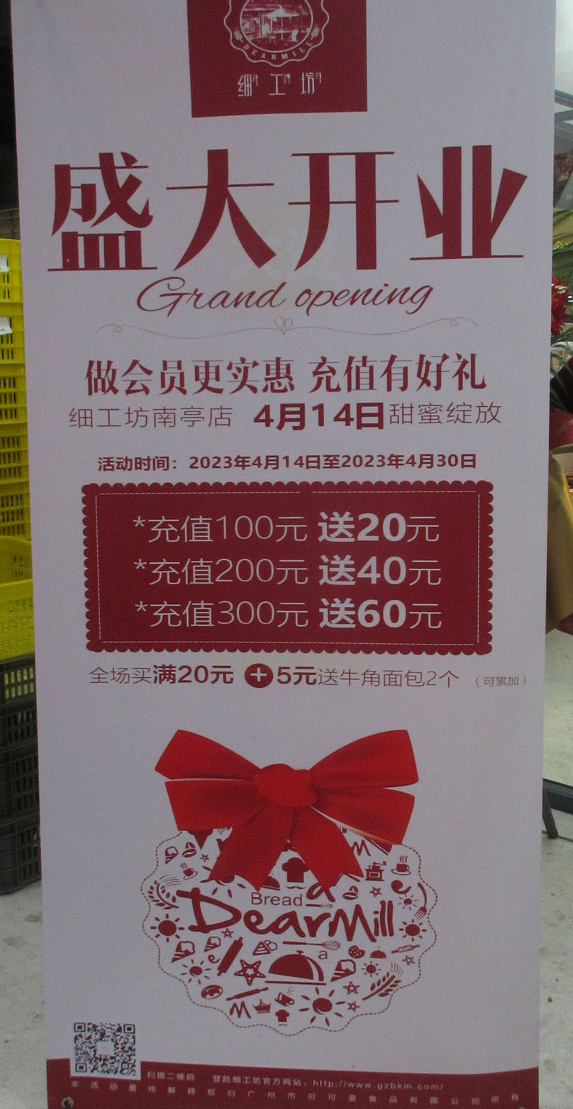 会员充值-充100送20,充200送40,充300送60 全场买满20元+5元送牛角包2个 可累加