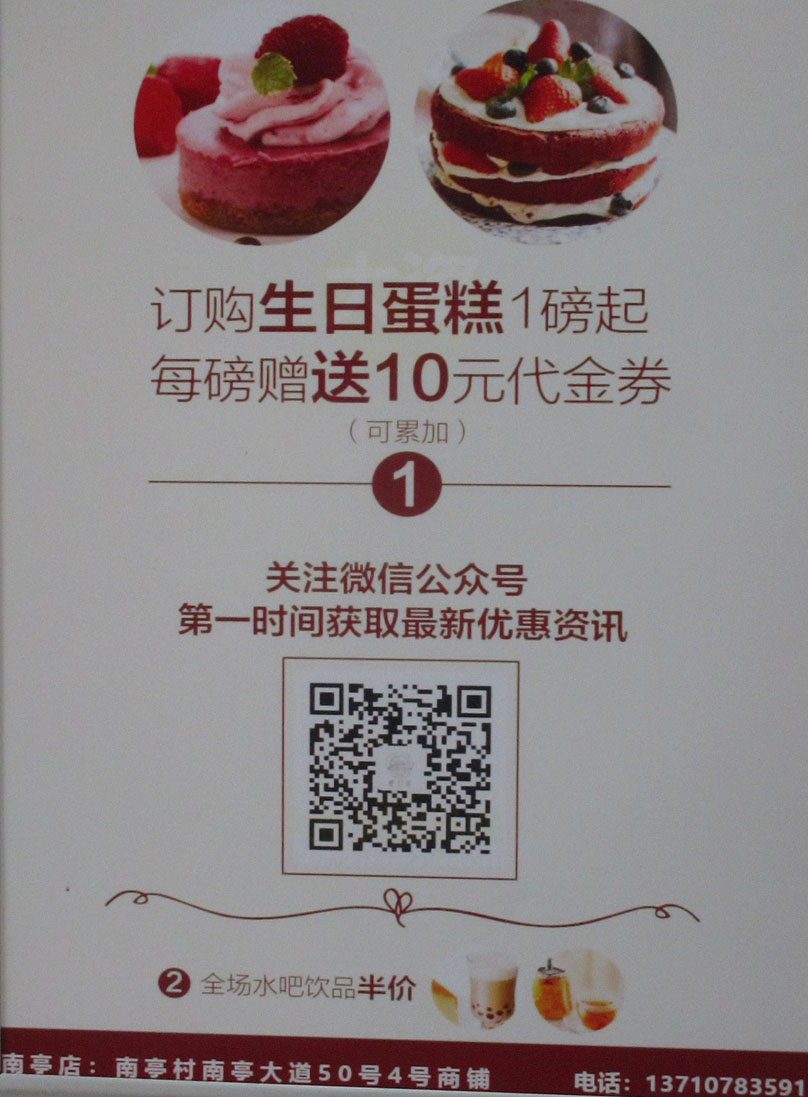 订购生日蛋糕每磅赠送10元代金券 可累加