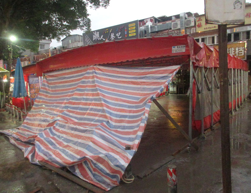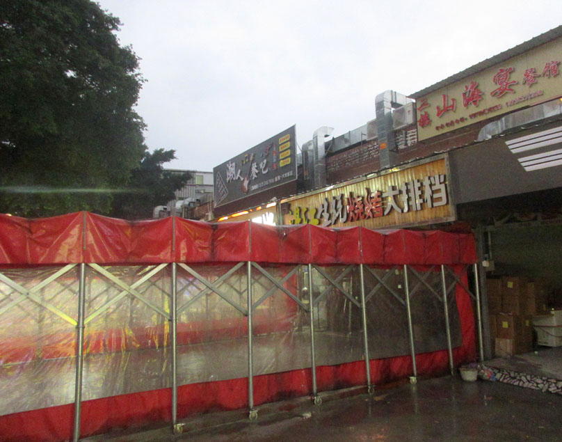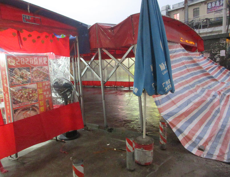 南商街一号楼东侧 似乎又看到湛江生蚝烧烤档对店门前地板进行铺砌水泥抬高地面 早期旁边的一两家也进行过类似做法 这是必要的吗,这样的话,当各个店的帐篷退收缩后,一号楼东侧整片广场空地的平整性就不再,看起来多少有些哪里不好或不妥或不必要吧,既然是整一块平地,就保持它的地势一致,要么就整体提高一个同等的高度
