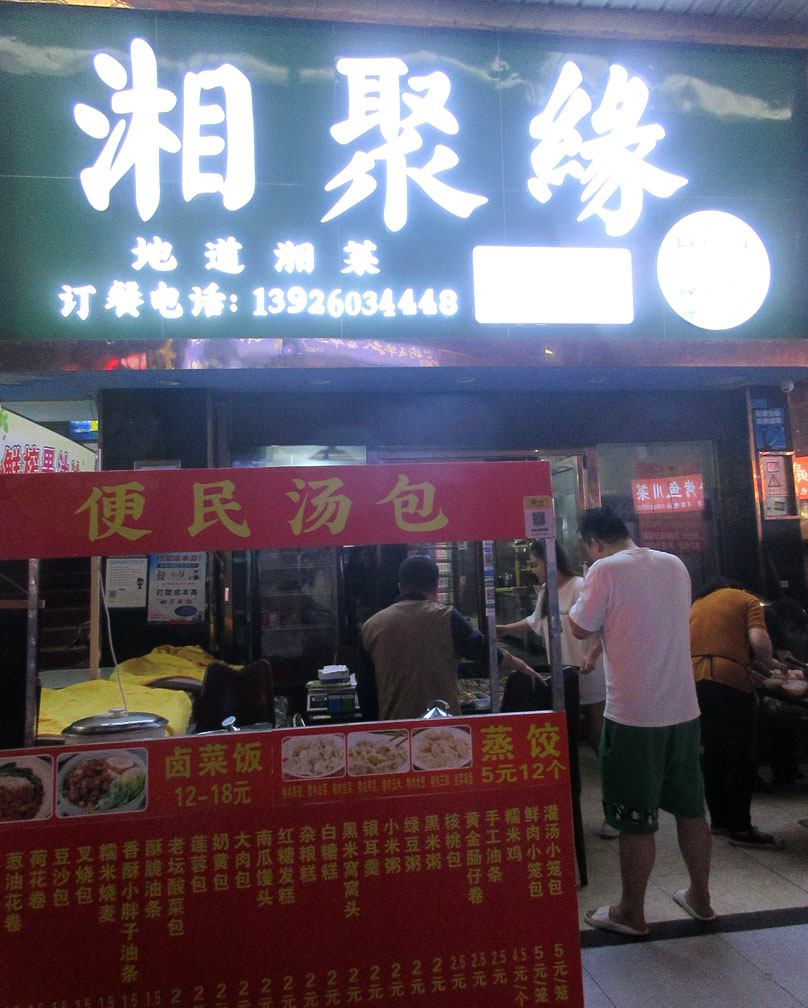 | 南商街四号楼中 湘聚缘一楼店门前 似增开一个便民汤包摊点 售卖各种包等早餐粥点 同时还有快餐卤菜饭&蒸饺供应 | ||||||