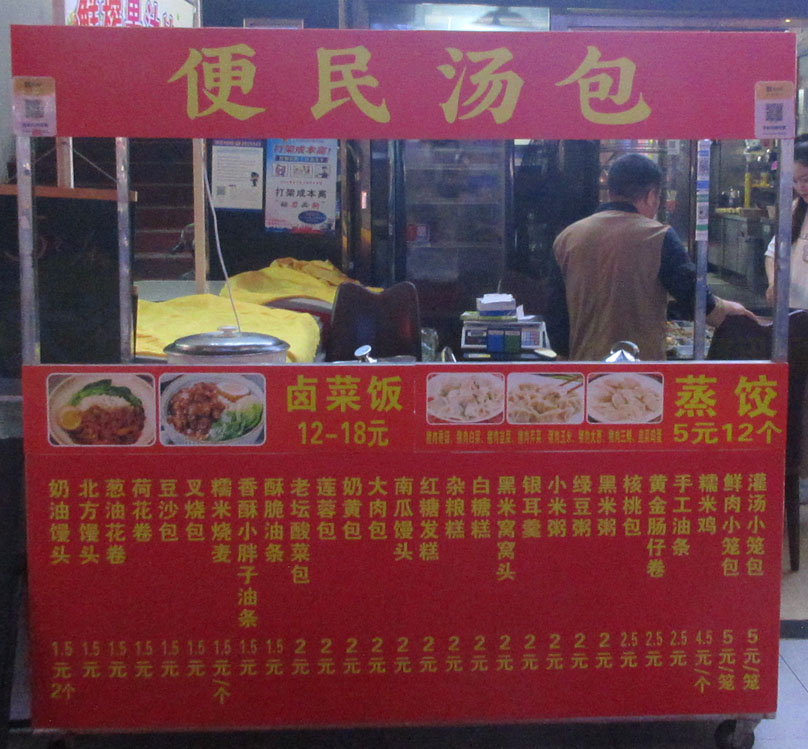南商街四号楼中 湘聚缘一楼店门前 似增开一个便民汤包摊点 售卖各种包等早餐粥点 同时还有快餐卤菜饭&蒸饺供应