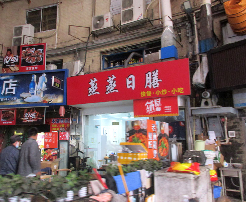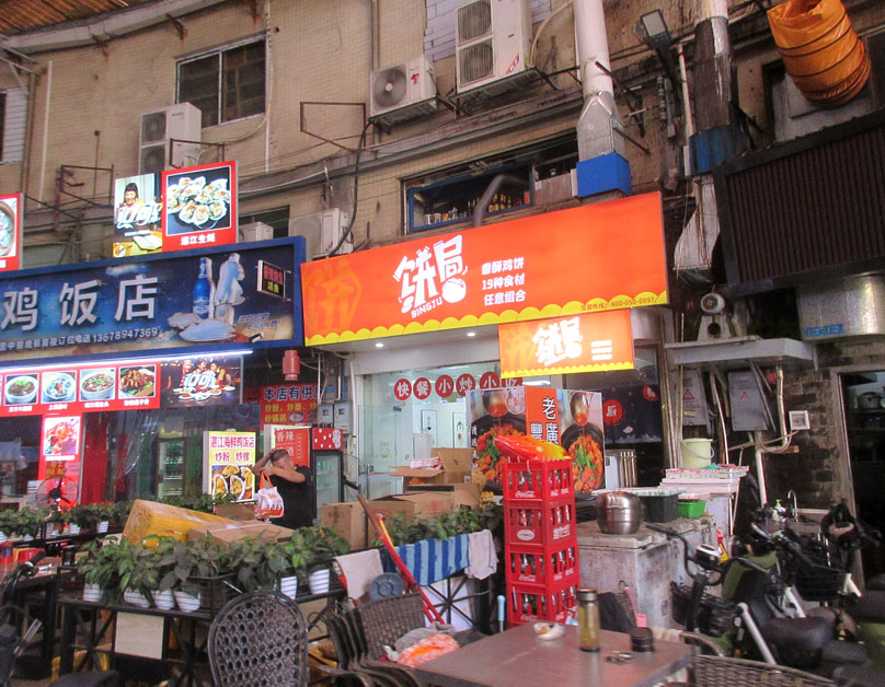 南商街六号楼东列中 之前叫蒸蒸日膳的餐饮小炒店 现在整个招牌都换成叫饼局了 饼局原先只是这家小炒店旁隔出开的一个小厨窗式店