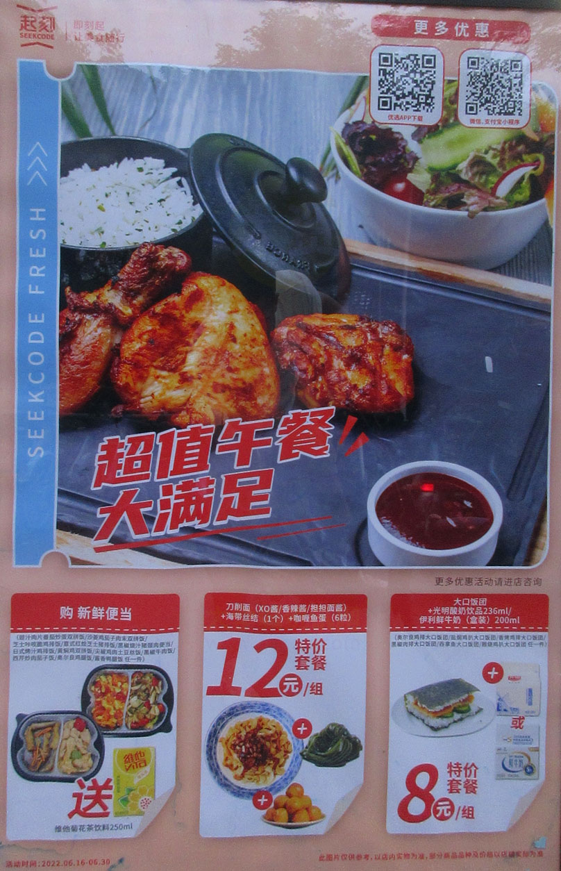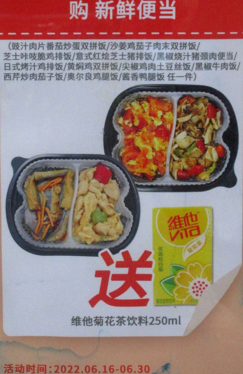 南商街八号楼西北角临街 美宜佳便利店 超值午餐大满足 购新鲜便当送维他菊花茶;特价套餐组合推荐,更多优惠请进店咨询 活动时间2022.06.16-06.30
