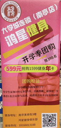 | 商业街四号楼北-鸿星健身俱乐部 开学季团购 限398名 599元抢购1599健身年卡 |