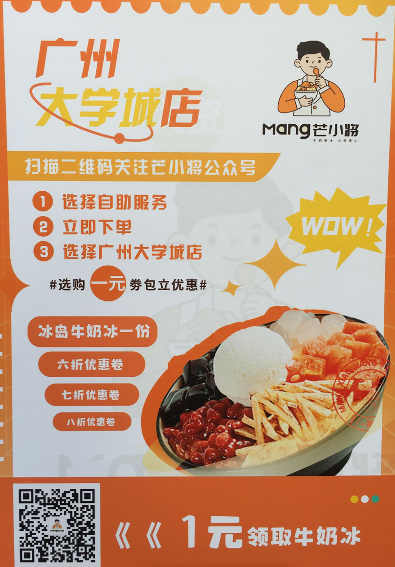 | 南商街十号楼东列南(蜜雪冰城隔壁) 芒小将新店开业 1元吃牛奶冰 | ||||||