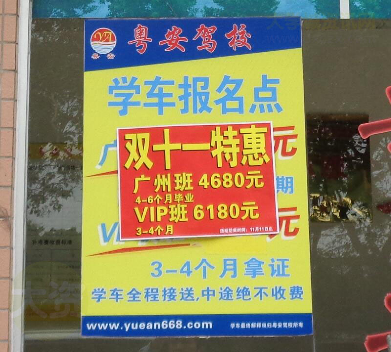 | 粤安驾校双十一特惠 广州班4680元 VIP班6180元 | ||||||