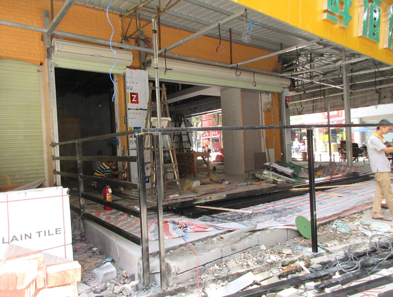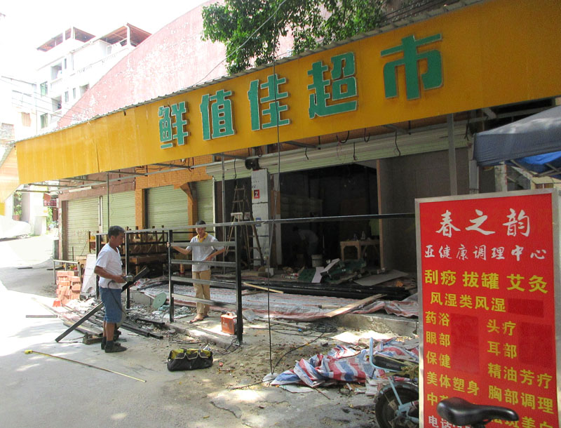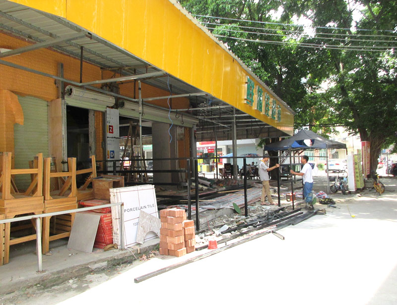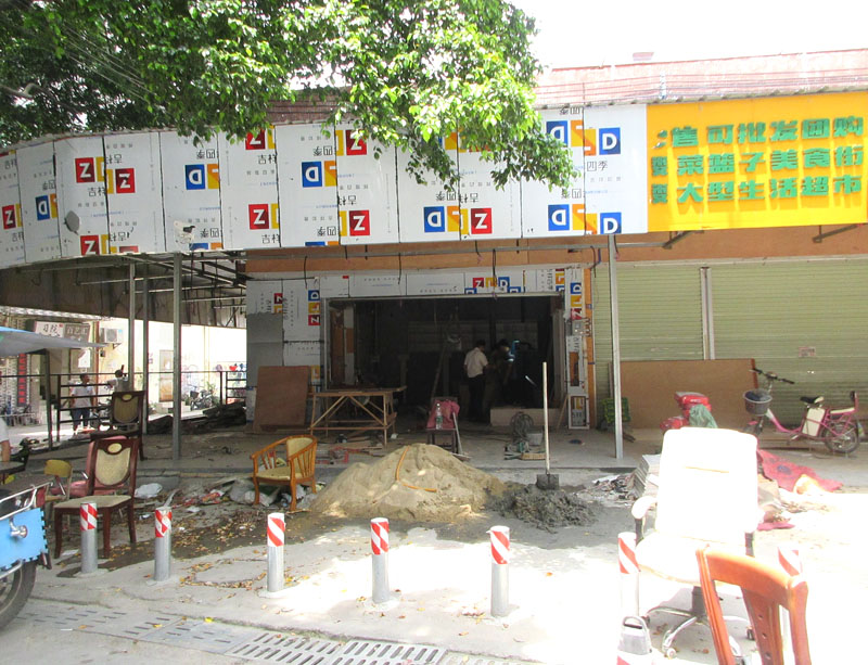 | 佳嘉生鲜超市今天继续装修,看到南侧焊接架设钢杆围隔起来了 | ||||||