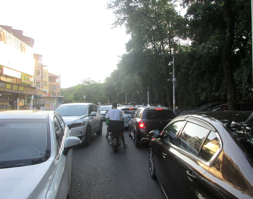 今天周六,傍晚时分,南亭商业街北侧路段车流还是挺显拥挤的