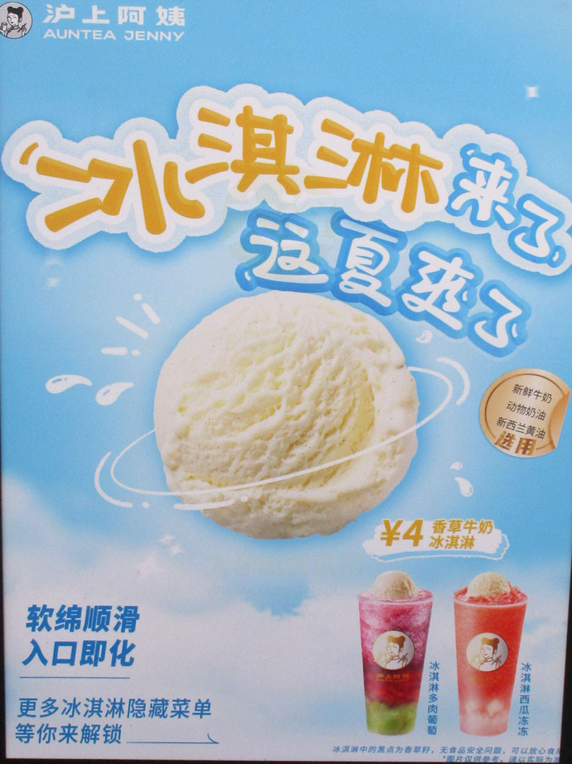 | 南商街十号楼东列中-沪上阿姨 冰淇淋系列 夏日推荐,香草牛奶,多肉葡萄,冰冻西瓜,均只售4元 | ||||||