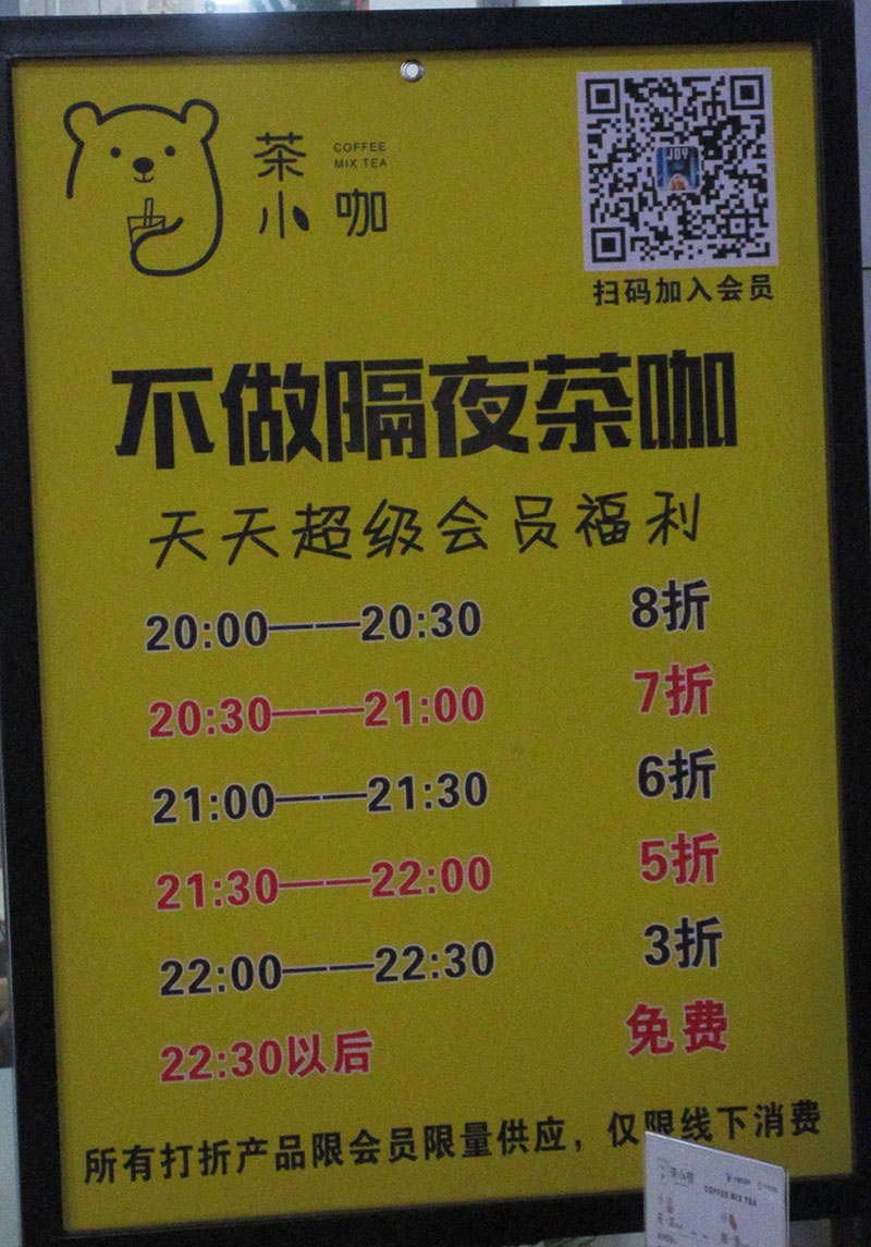 | 十号楼西南-茶小咖 不做隔夜茶咖 天天超级会员福利 22:30以后免费 | ||||||