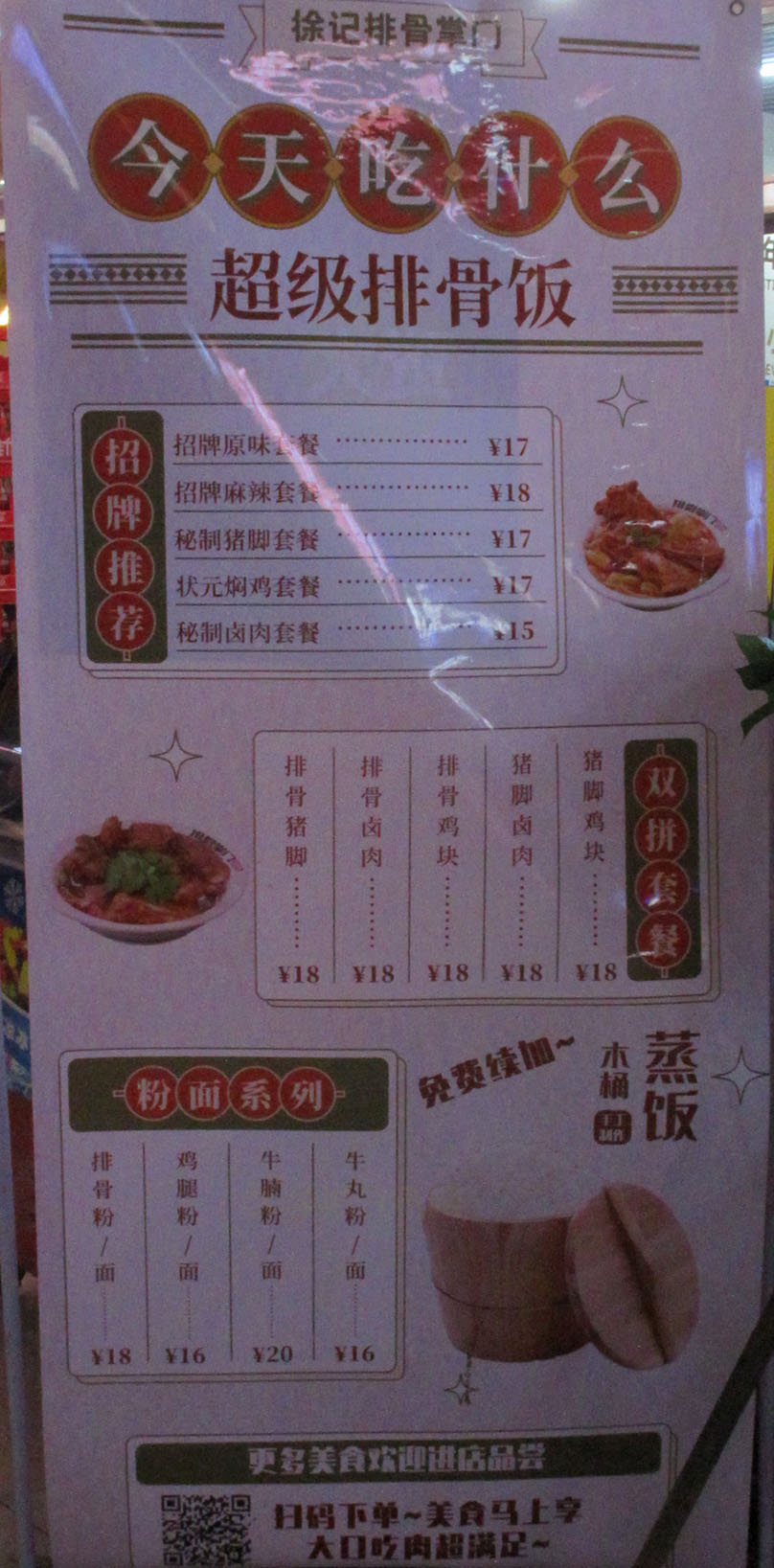 | 南商街四号楼中位约 徐记排骨掌门 超级排骨饭&招牌推荐 双拼套餐 木桶蒸饭免费续加 还有粉面系列 | ||||||
