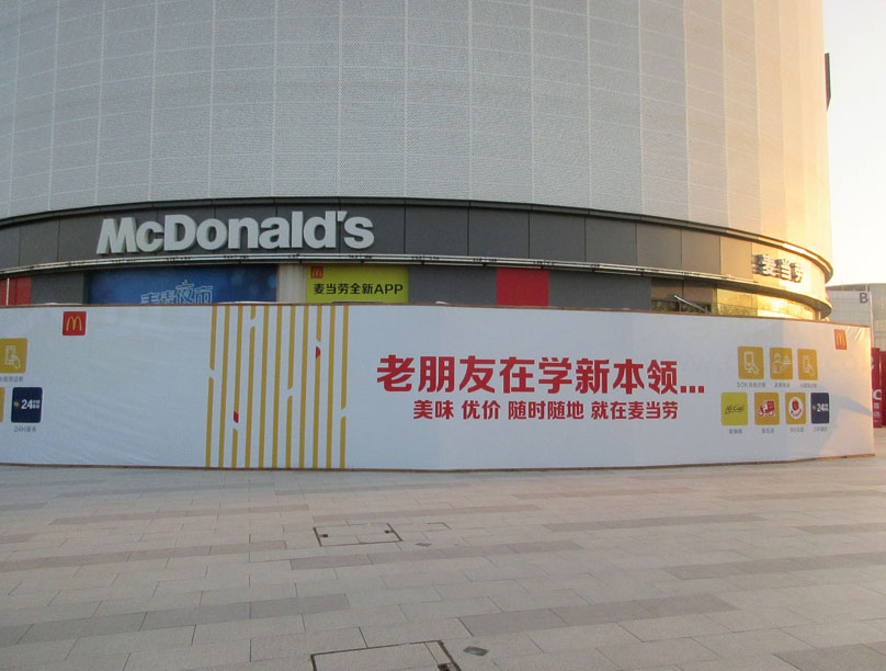 虽然没像隔壁肯德基那样大兴土木全店式装修 麦当劳的装修也是有在进行的 就是声响和进度可能还相对较小 两店隔那么近,麦当劳是否有考虑新装后门面或入口增开到靠北侧向着目前广场的主出入口方向呢