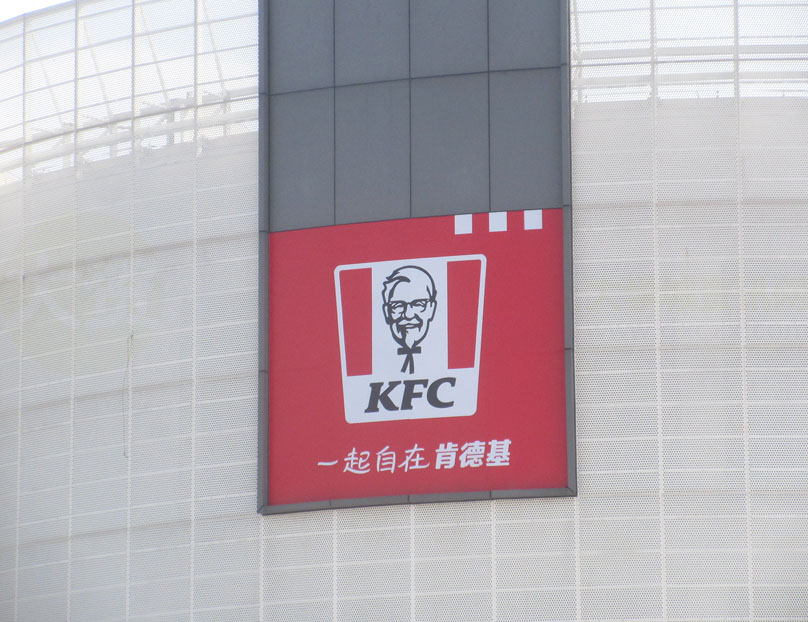| 北亭青创汇西北角圆柱体楼外墙北侧较高位置 KFC肯德基似乎新近又增加了个指引标识图案 | ||||||