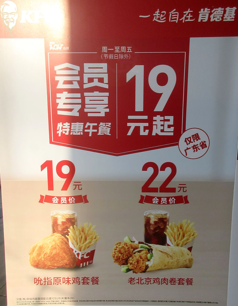 | 一起自在肯德基,WOW会员专享特惠午餐19元起,仅限广东省 吮指原味鸡套餐会员价19元,老北京鸡肉卷套餐会员价22元 | ||||||