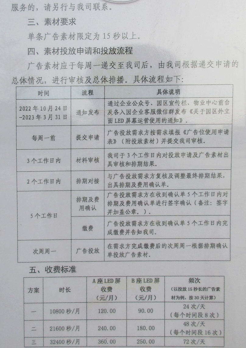 | 青创汇外立面LED屏幕运营通知 | ||||||