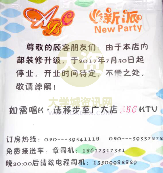 | 北亭广场新派KTV内部装修升级7月30日起停业 | ||||||