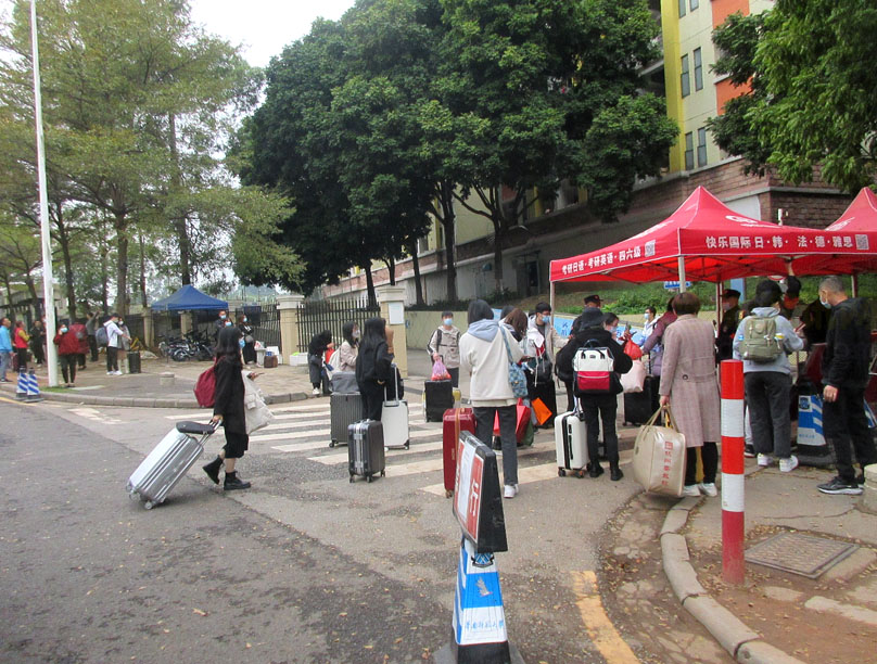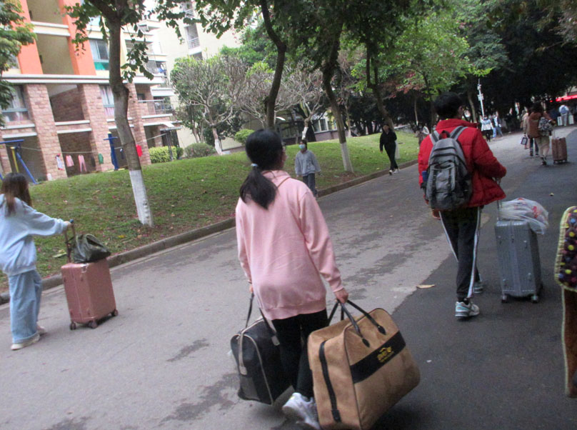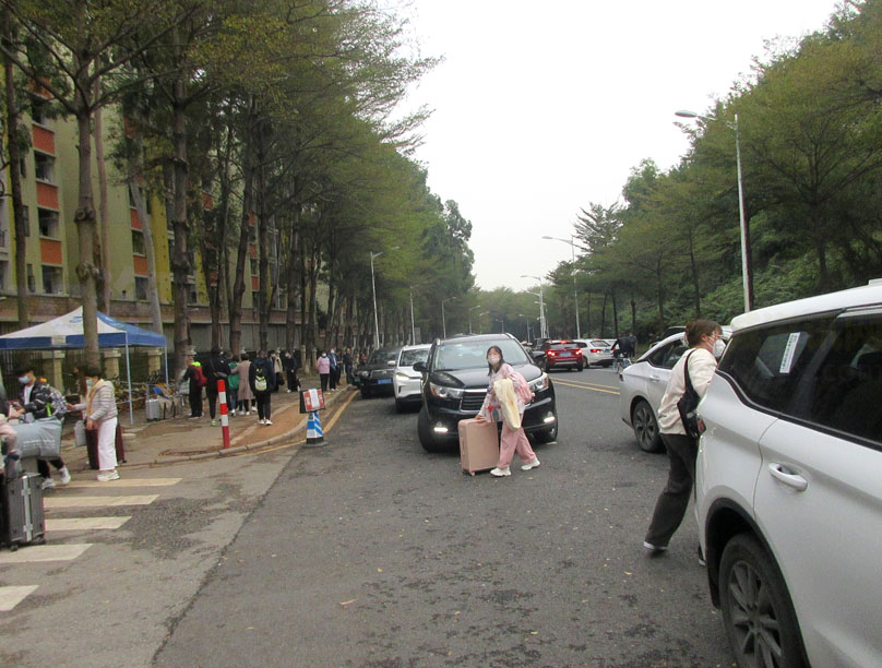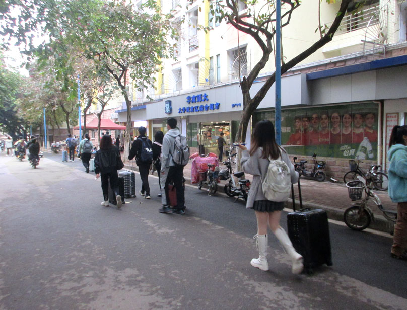 今天华师(省内)学生春季开学返校,华师一路整段车流拥挤,相较昨天省外的小部分,今天生活区周边道路和生活区内都明显人群骤增,随处可见拖拉杆箱和提背包情景