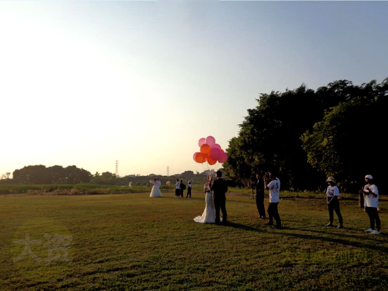 华师教学区南门外草坪,有似乎是摄影公司的在此取景进行婚纱摄影