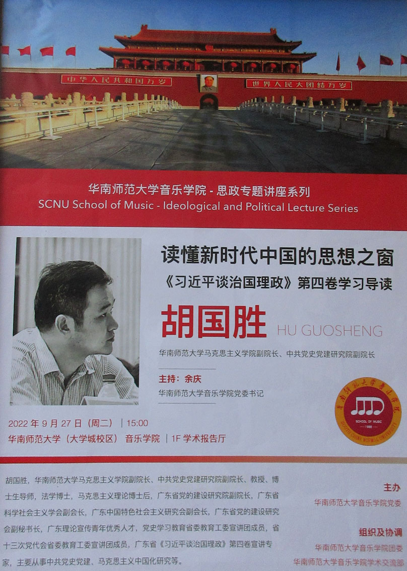 音乐学院-思政专题讲座 读懂新时代中国的思想之窗 2022.09.27周二下午15点 音乐学院一楼学术报告厅 主讲人:胡国胜