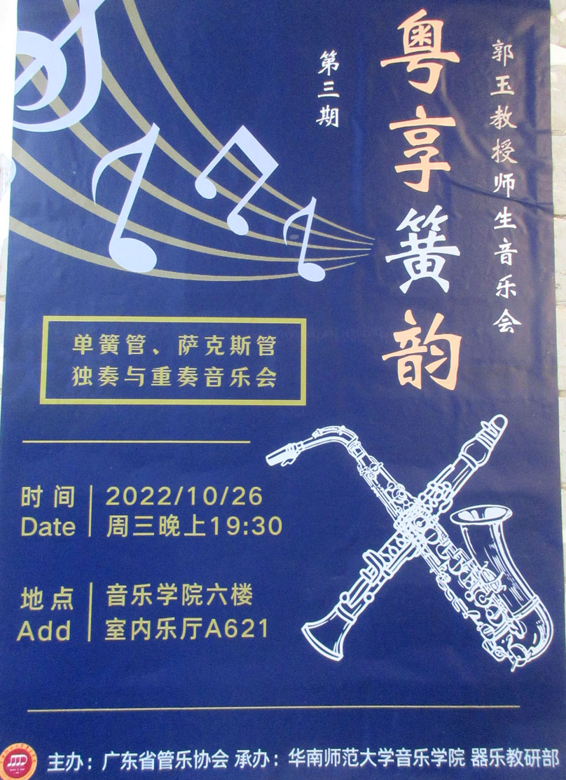 第三期·粤京簧韵-郭玉教授师生音乐会&单簧管、萨克斯管独奏与重奏音乐会 2022.10.26周三晚19点30分 音乐学院六楼室内乐厅A621