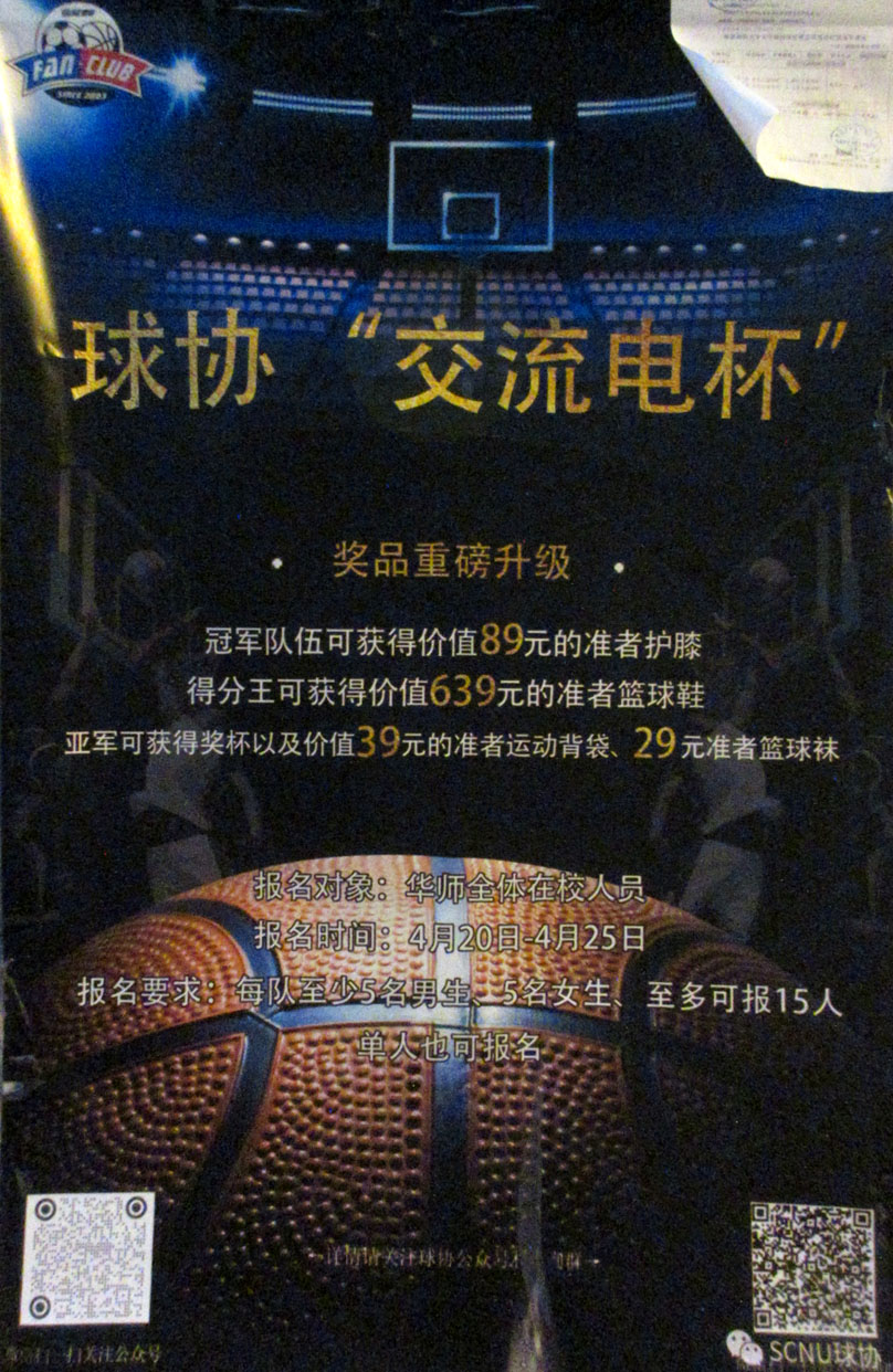 华师球迷协会“交流电杯”篮球赛 报名对象-华师全体在校生 报名时间4月20日-4月25日 奖品丰厚