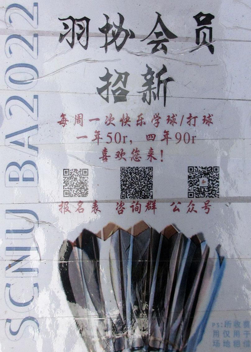 华师羽毛球协会2022招新 每周一次快乐学球&打球 一年50r,四年90r  扫码进入咨询群&获取报名表
