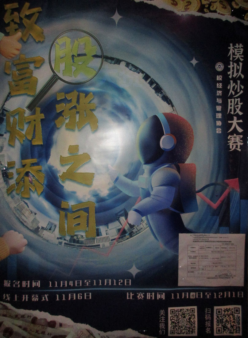 校经济与管理协会·致富财添股涨之间-模拟炒股大赛 报名11月4日-11月12日 线上开幕式11月6日 比赛11月4日-12月1日 扫码报名