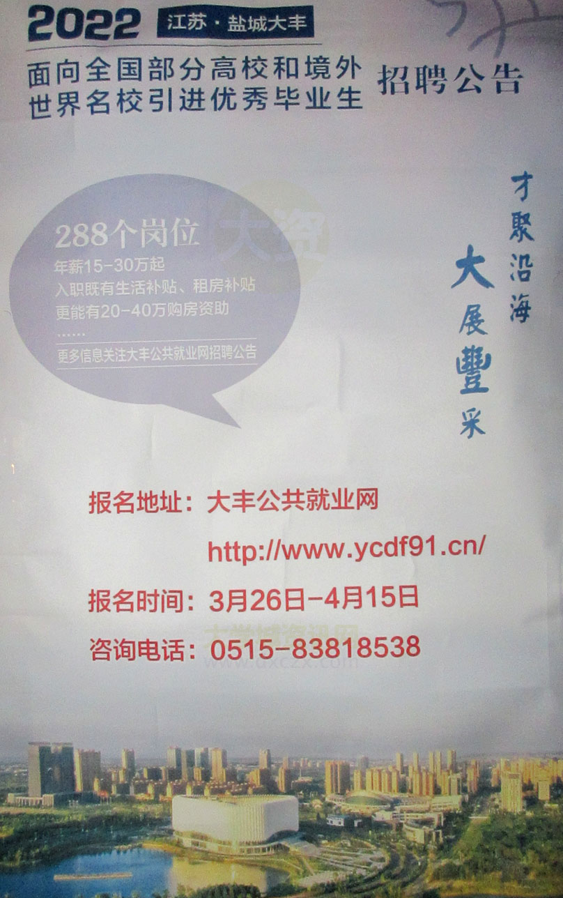 2022江苏·盐城大丰面向全国部分高校和境外世界名校引进优秀毕业生招聘公告 报名时间3月26日-4月15日