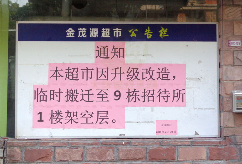 金茂源超市因升级改造临时搬迁至9栋招待所1楼架空层