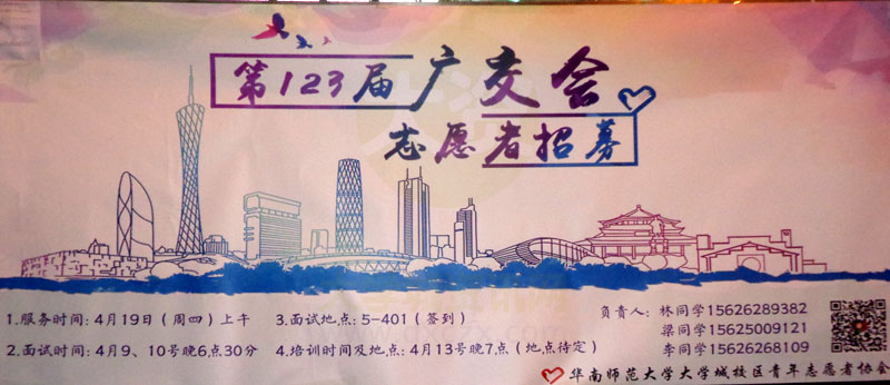 第123届广交会志愿者招募面试 4月9、10号晚教5-401