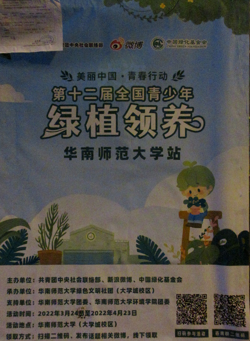 美丽中国·青春行动  第十二届全国青少年绿植领养活动 华南师范大学站 时间2022.03.24-04.23