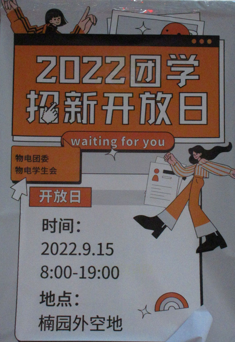 物电团委学生会2022招新开放日 9.15早上8点-傍晚19点 楠园外空地