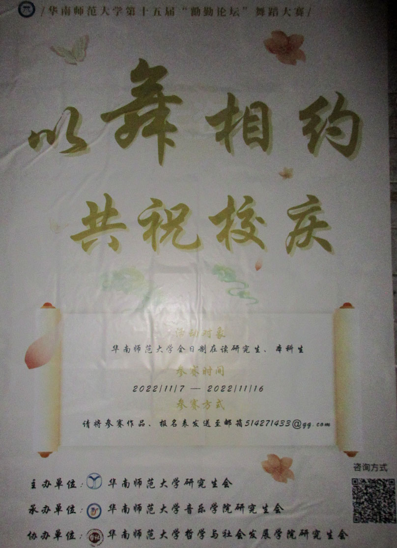 华师第十五届勷勤论坛之舞蹈大赛 参赛时间2022.11.07-11.16 参赛方式将作品报名表发至邮箱 面向华师全体学生
