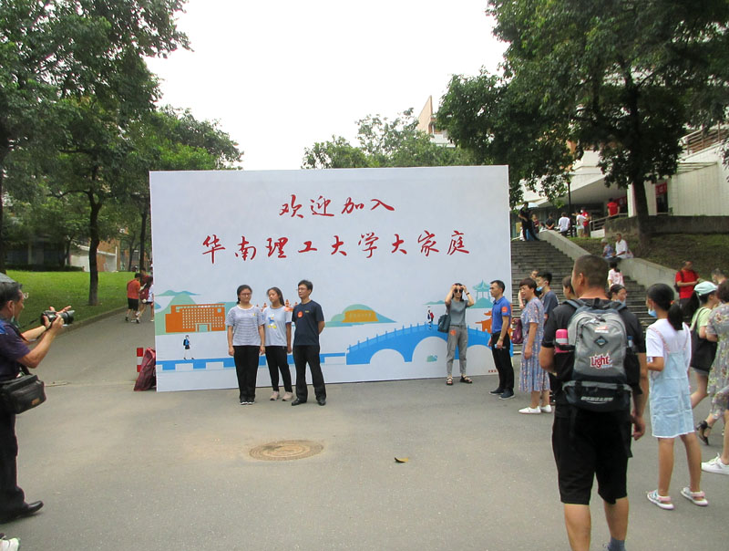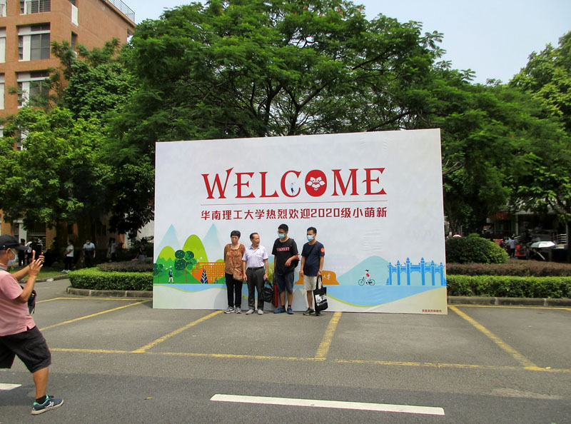| 报到日这天,生活区的迎新背景墙,也成为不少新生家长争相打卡的热点 | ||||||